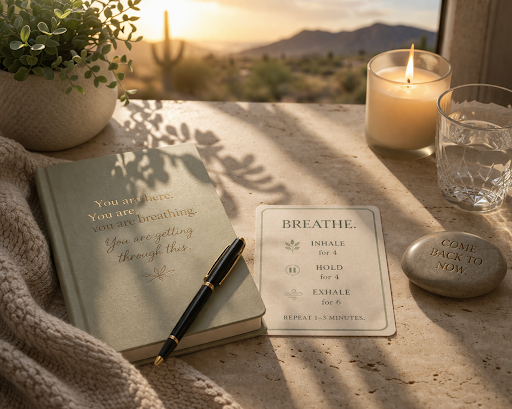 Sensory anchors — something textured to hold, something cold, something that carries a scent you associate with safety — remind the body that it is here, now. Not inside the worst-case scenario. Here.